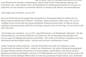Presseartikel zum Thema "Wohnprojekt Horizonte"